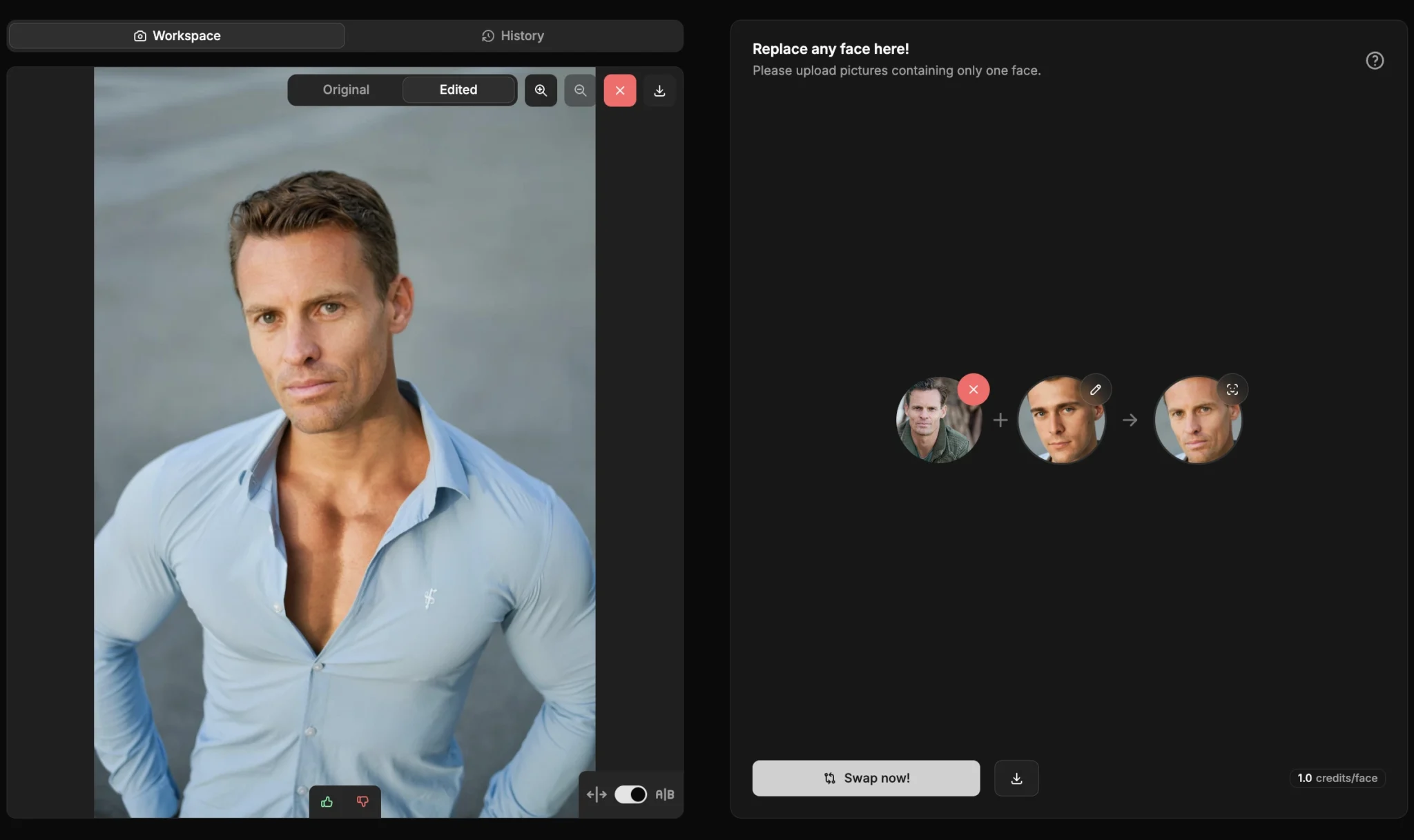 You can try face changing using PiktID’s Swap tool and get 10 free credits at https://studio.piktid.com/swap.