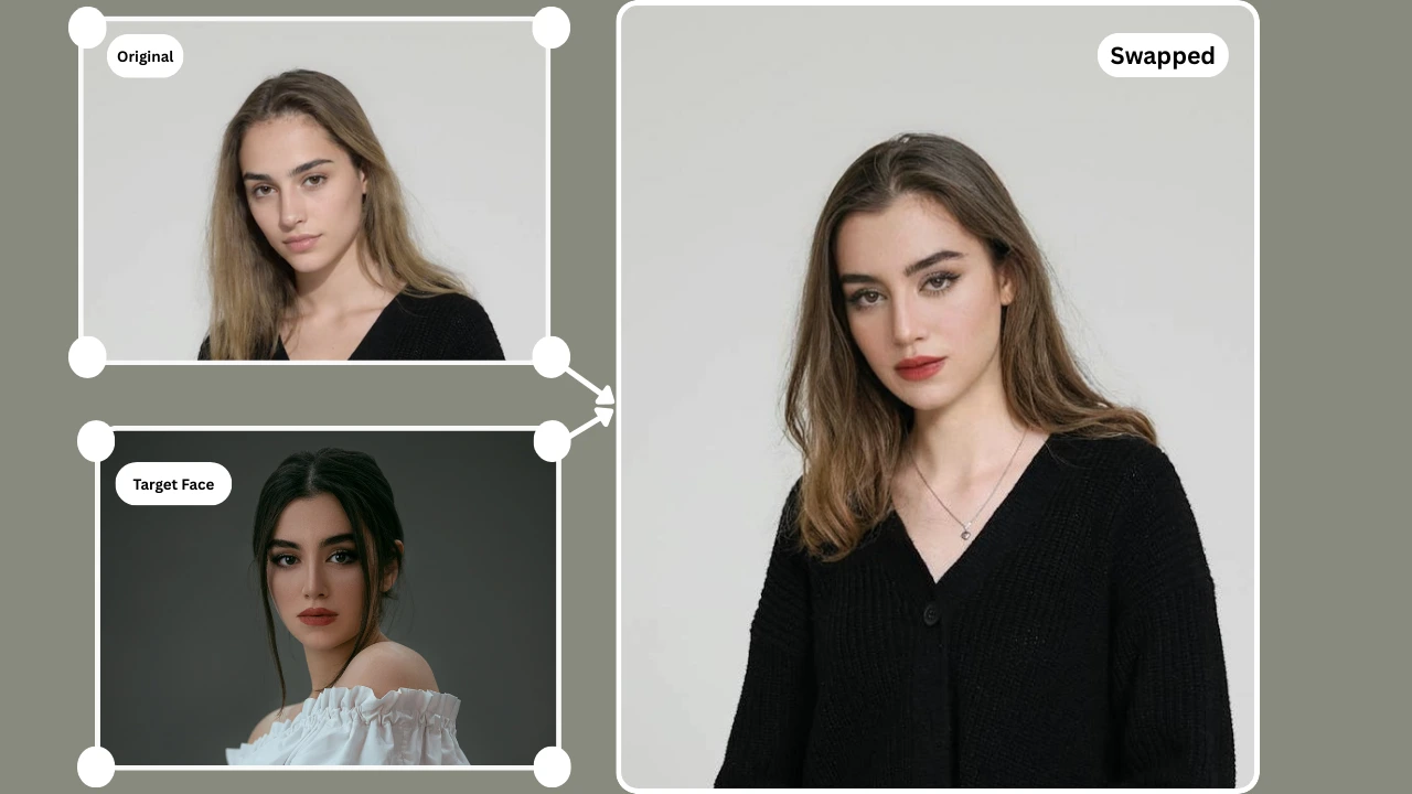 - Face Swap Replaces the original face with a target face while maintaining pose, lighting, and background.