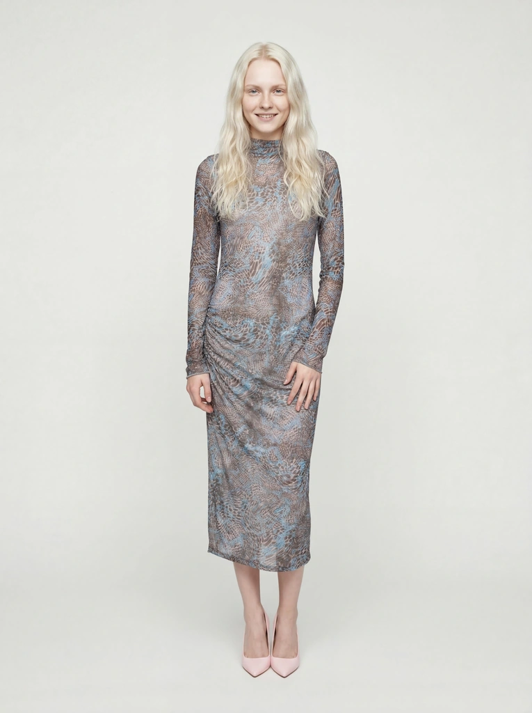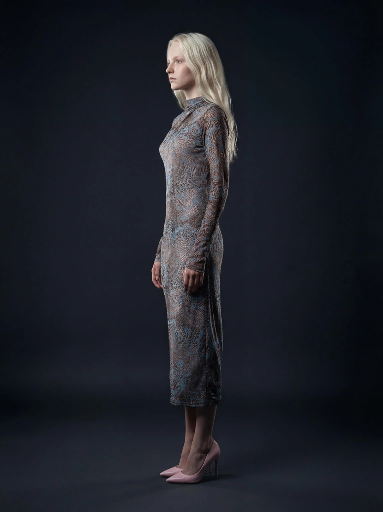 Después de eso, procesamos cada imagen de plano plano a través de En el modelo, que utiliza inteligencia artificial para transformar una simple fotografía de una prenda plana en una imagen de catálogo realista con una modelo. Como resultado, cada prenda aparece en una modelo virtual en una pose natural y realista.